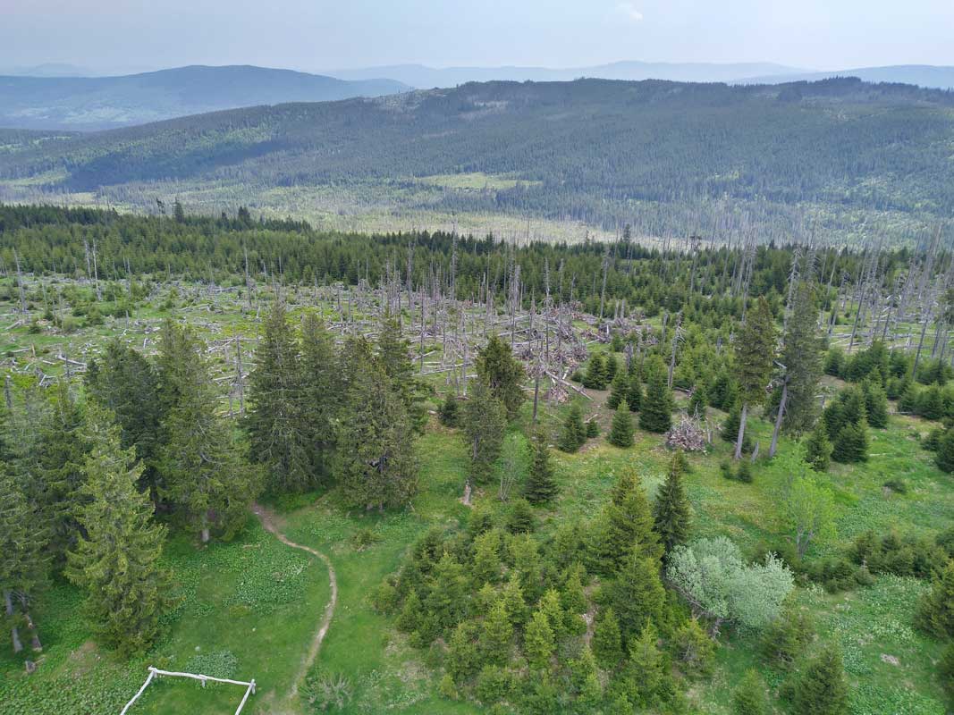 Krajina po větrných kalamitách i znovuzrozený les, mozaika horských luk, pralesů a údolí – Šumava z ptačí perspektivy.