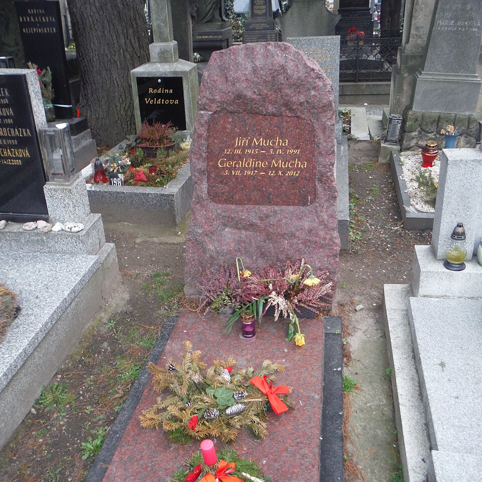 Hrob Jiřího Muchy na Vyšehradském hřbitově
