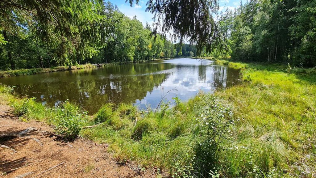 Doporučená trasa: Od silnice II/168 sledujte lesní cestu k hrázi – dosažitelné i s rodinou.