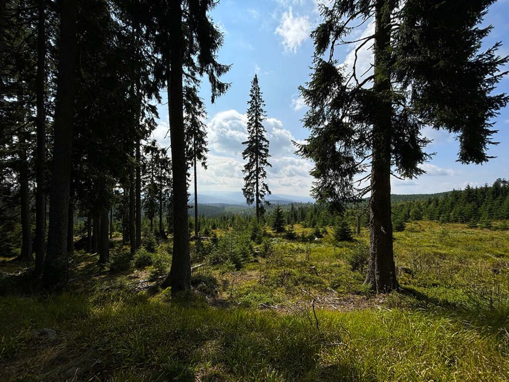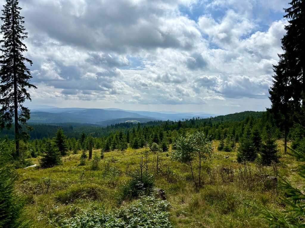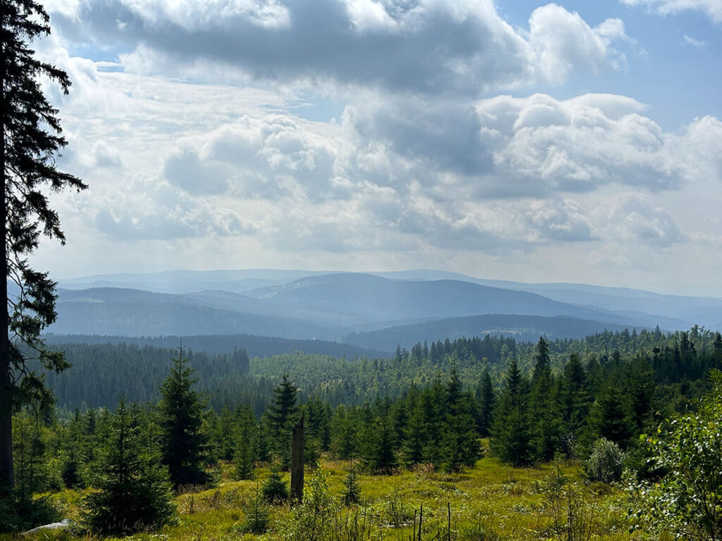📍 Vrchol Luzný (Lusen) – oblíbený cíl na německé straně, s nádherným výhledem na Šumavu i Bavorský les.