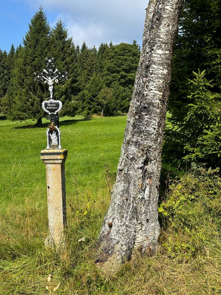 Od té doby místo zůstává v tichosti – jen dřevěné sochy a informační tabule připomínají, že i sem zasáhly dějiny.