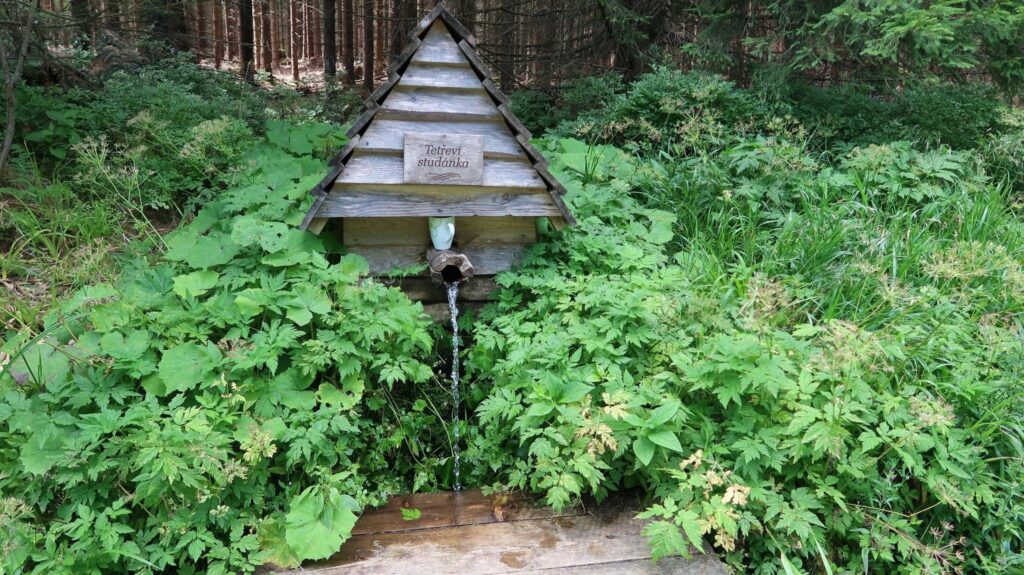 Tetřeví studánka tak svým názvem i polohou připomíná dobu, kdy zdejší lesy obývali tetřevi hlušci a jejich tokání bylo pro celý kraj typickým jarním zvukem.