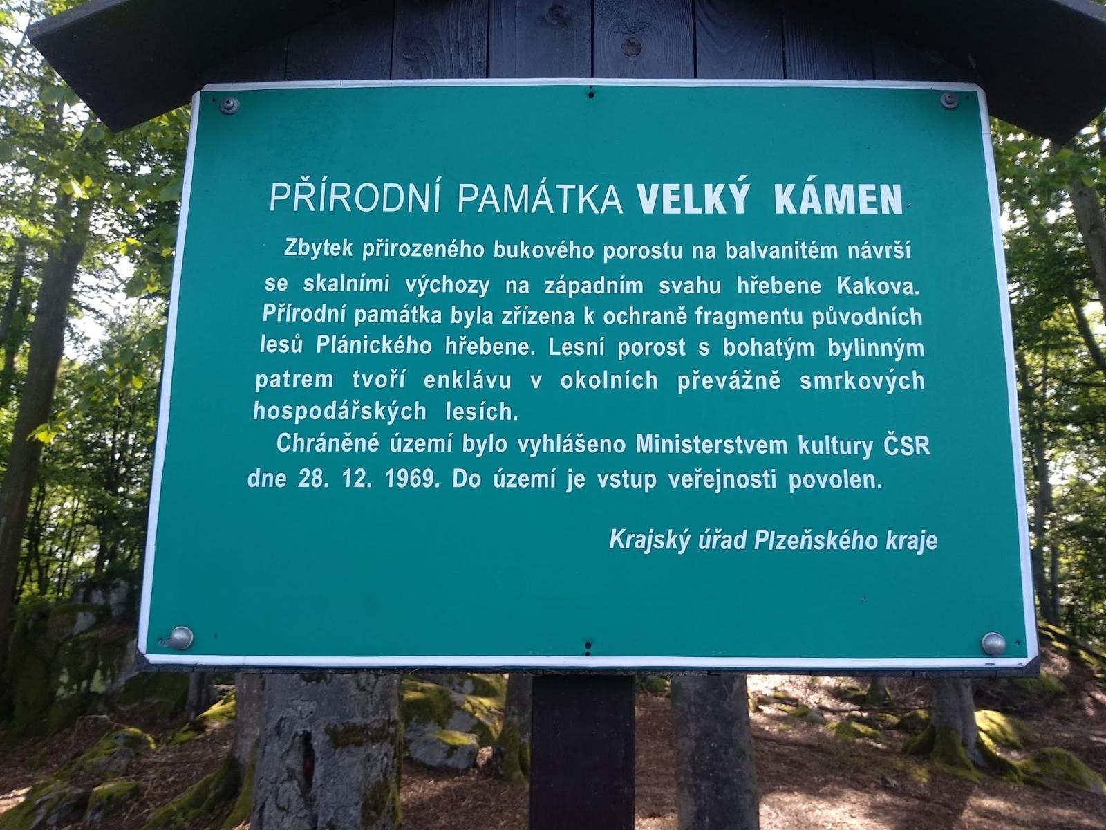 Velký kámen leží v srdci Plánického hřebene, oblasti typické hlubokými lesy, zvlněnými loukami a zbytky původní divoké přírody.