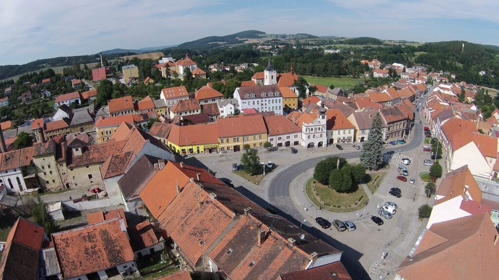 - 🕍 Radnice s věží (1501–1629) – klenot renesance s podloubím a sgrafity.
